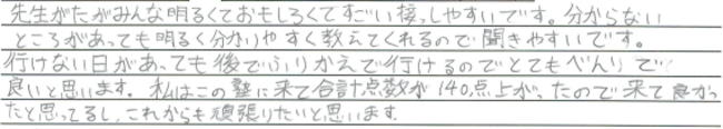 これからも、ここの塾で少しずつ成績を上げて、頑張っていきたいと思います。