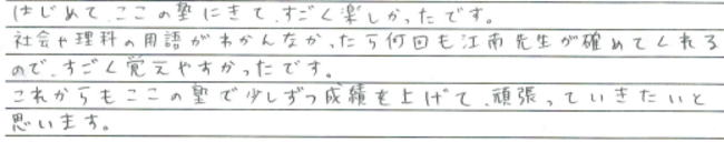 はじめて、ここの塾にきて、すごく楽しかったです。